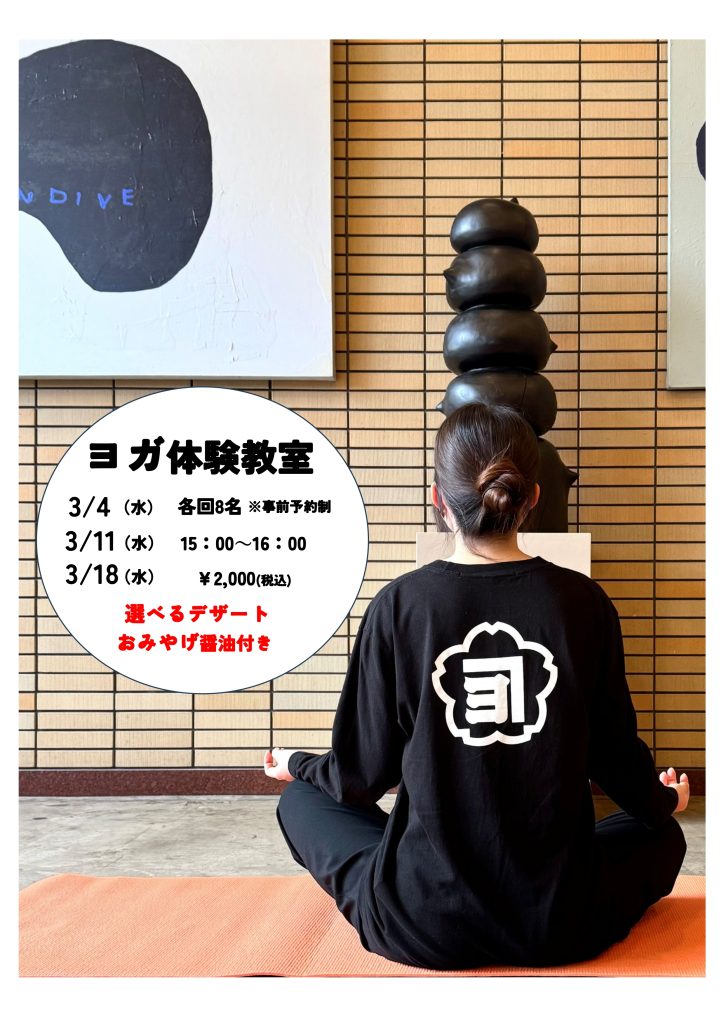 15時〜16時に、「ヨガ体験教室」を開催します。