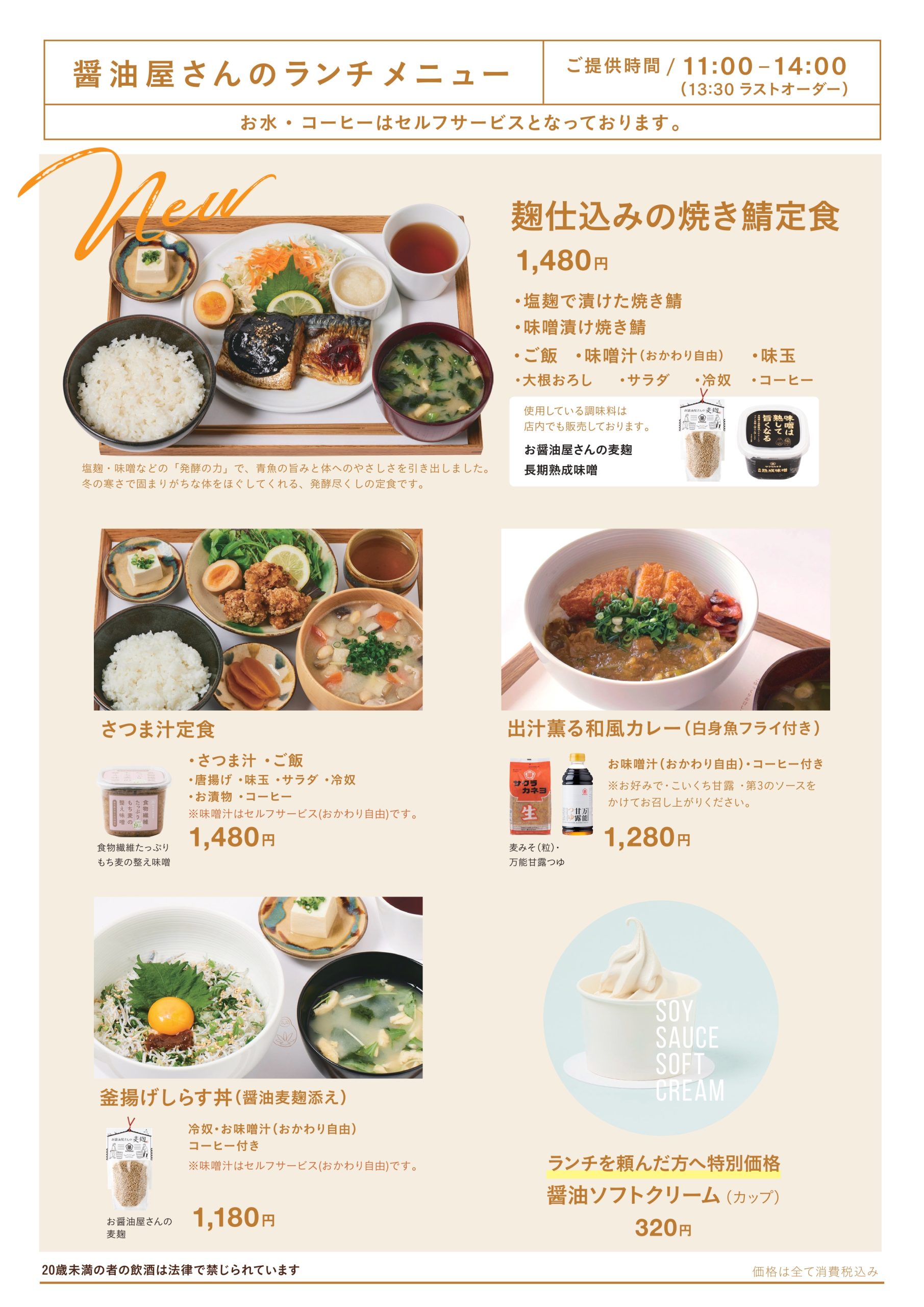 ※「醤油ソフトクリーム」や「しんこだんご」などテイクアウト商品の取り扱いはございません。